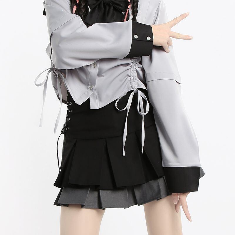 サブカル 服 地雷系 通販 Catwish ロリータ シャツ セーラー服 リボン 長袖 ショート丈闇かわいい ゴシック系 レトロ