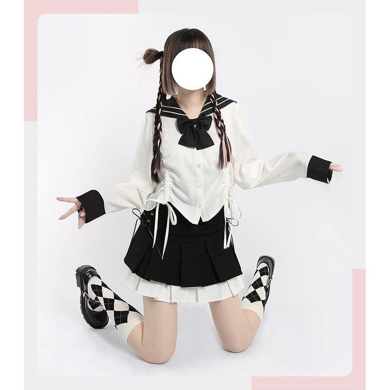 レトロなセーラー服をベースにゴシック系要素をプラスした甘めなJKシャツ