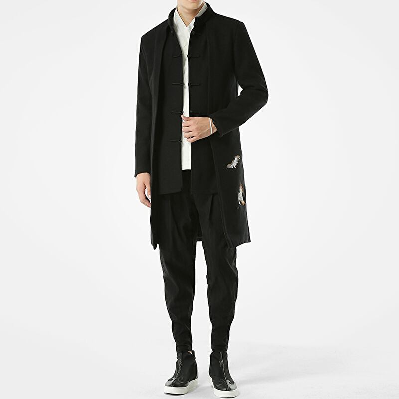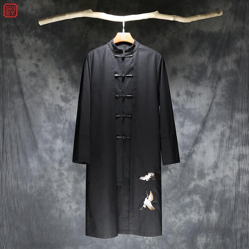 サブカル 服 地雷系 通販 漢服 チャイナ服 長袖 ロング丈 ツル 刺繍 クール かっこいい モード系 中国 民族衣装