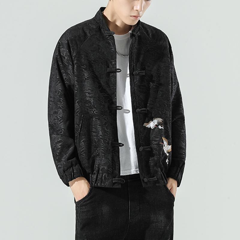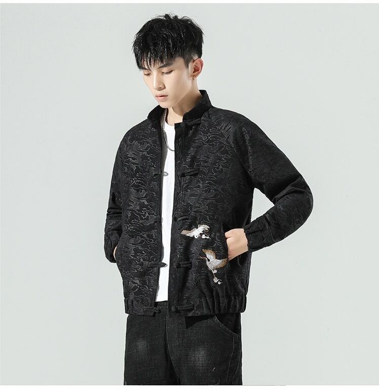 鶴の刺?が入ったクールなサブカル系長袖チャイナ服風ジャケットです。