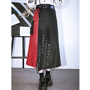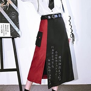 サブカル 服 地雷系 通販 チャイナ風服 チャイナ風服 古怪舎 中華風 スカート ミモレ丈 Aライン バイカラー 中華服 ハイウエスト フレアスカート 漢字 サブカル服可愛い ロリータ
