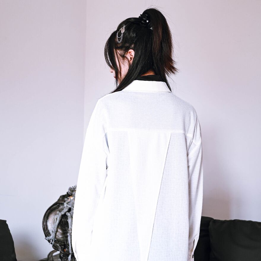 病み可愛いサブカルメーカー、古怪舎ブランドの普段着使いにぴったりな花柄刺繍の白シャツです。