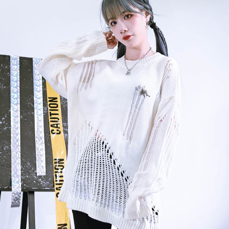 病み可愛いサブカルメーカー、古怪舎ブランドの普段着として使い回したいざっくり編みニットのセーターです。