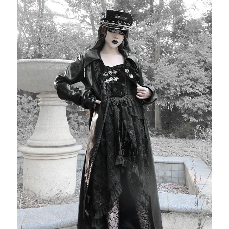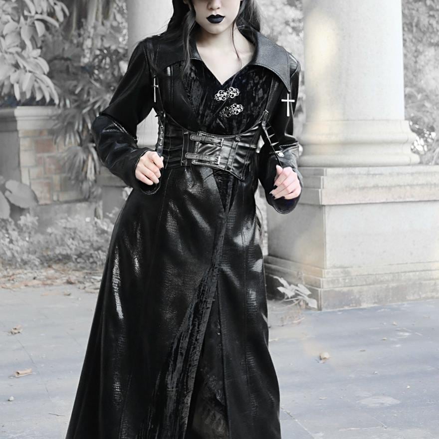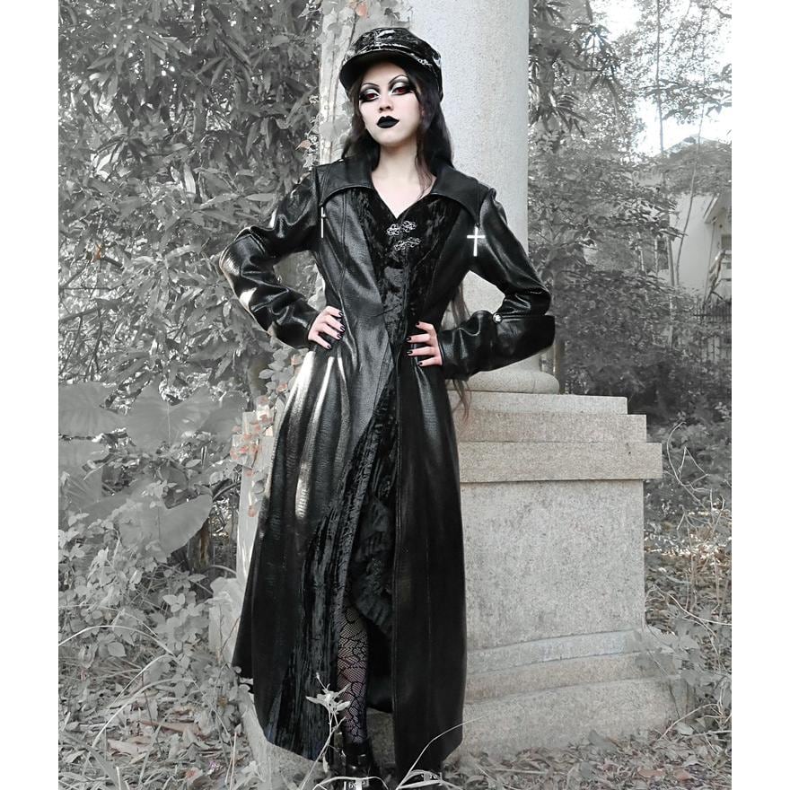 サブカル 服 地雷系 通販 BLOOD ロング ジャケット コート 長袖 PUレザー 十字架 チャーム 暗黒 かっこいい クール バンギャ サブカル服
