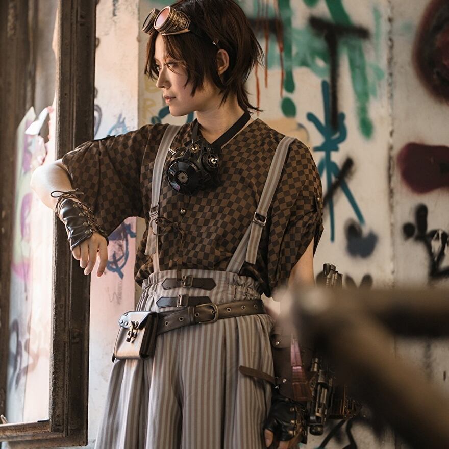 電脳異世界を表現するサブカルファッションの一つ、スチームパンクのユニセックスワイドパンツです
