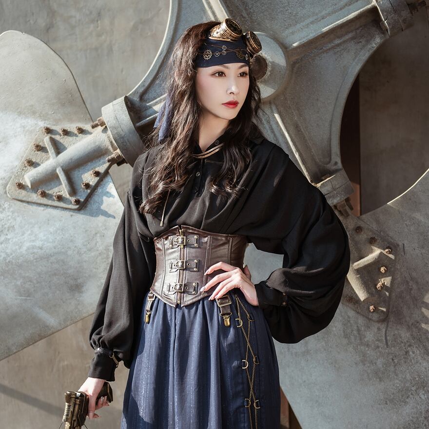 電脳異世界を表現するサブカルファッションの一つ、スチームパンクのユニセックス長袖ブラウスです