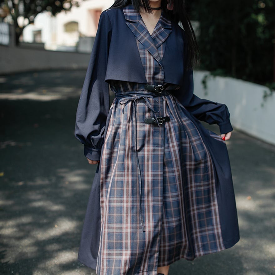 サブカル 服 地雷系 通販 ワンピ フェイク レイヤード ジャケット チェック柄 ハイウエスト 闇かわいい サブカル服