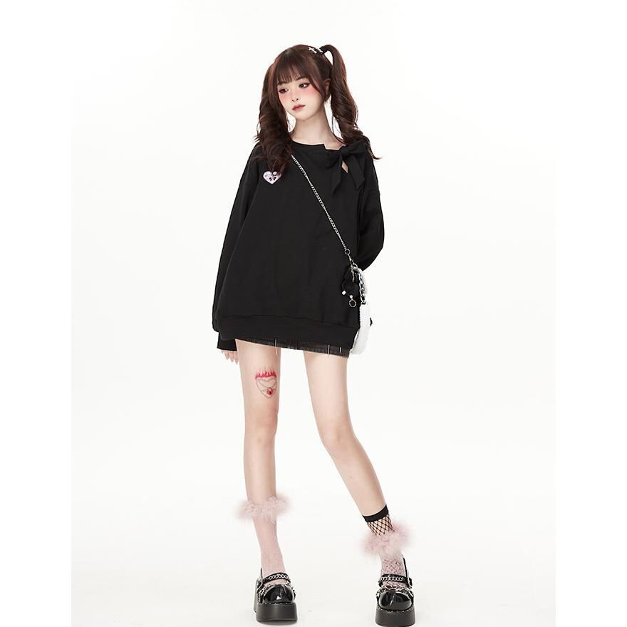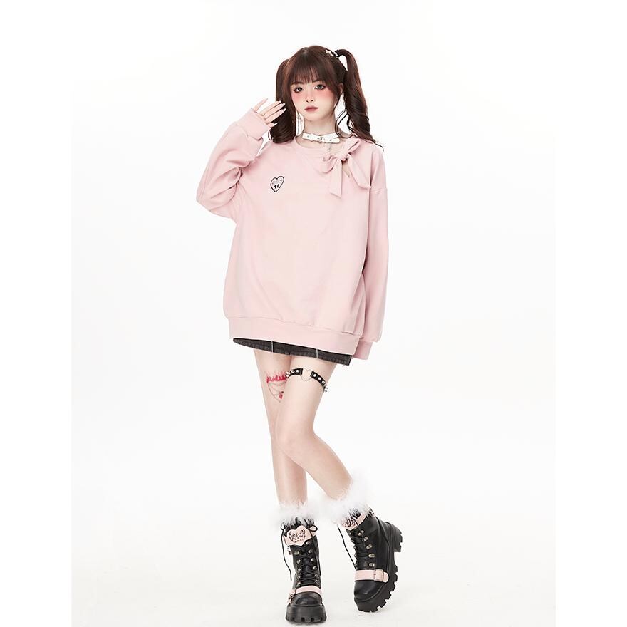 サブカル 服 地雷系 通販 CRAZYGIRL 長袖 トレーナー シャツ リボン ハート ロゴ かわいい ロリータ ストリート 甘ロリ