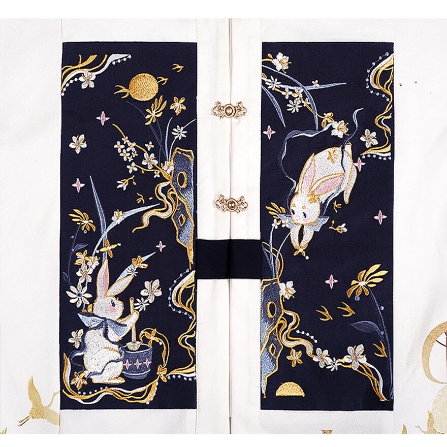 馬車にうさぎがモチーフのレトロな中国画風の中世を思わせる優雅なラップスカートです。