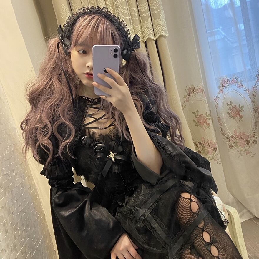 暗黒の黒薔薇のドレスにシアーなボレロ、ヘアバンドのサブカル系地雷服のセット割りです。