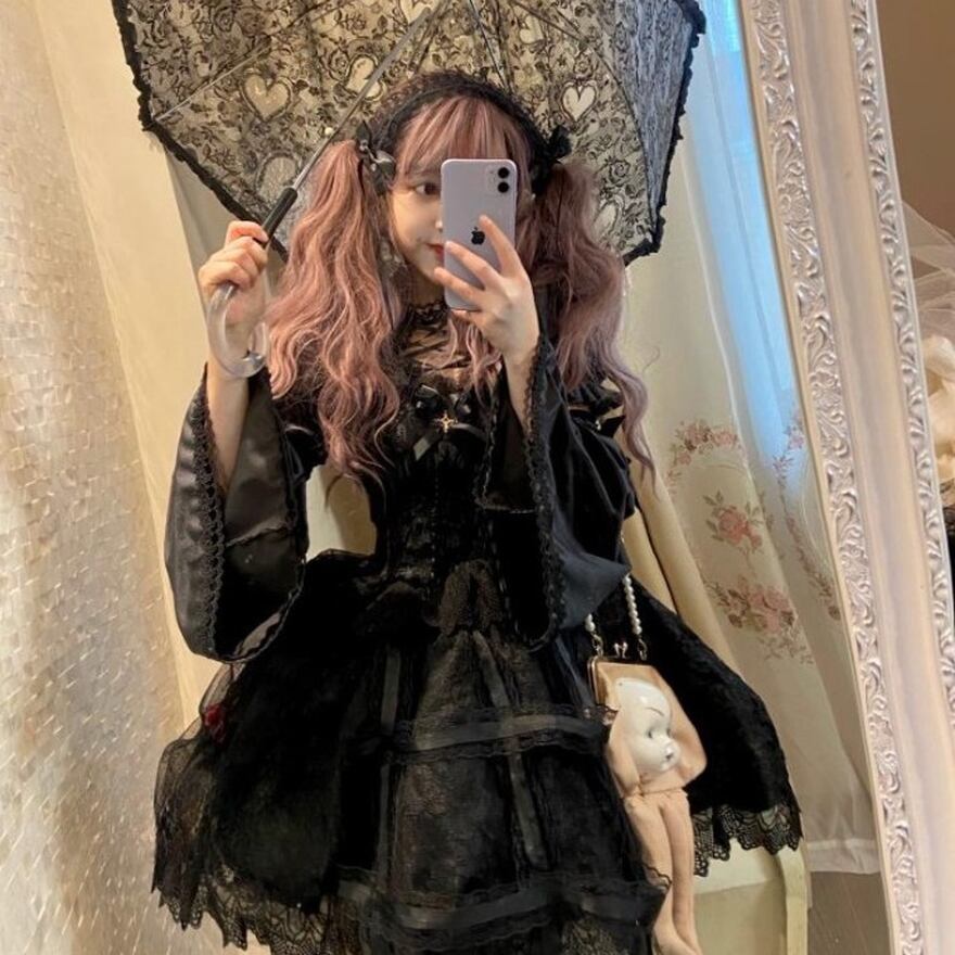 サブカル 服 地雷系 通販 セット割り 4点セット ドレス ボレロ ヘアバンド バルーン袖 薔薇 レース 暗黒系 服 ストリート系