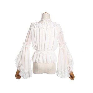 襟元のフリルとふわっと広がった袖のレース使いがエレガントで甘い。
