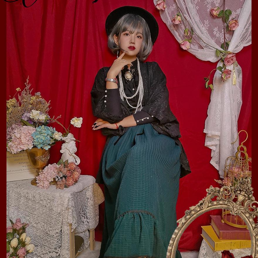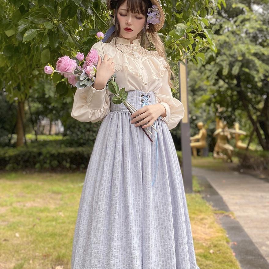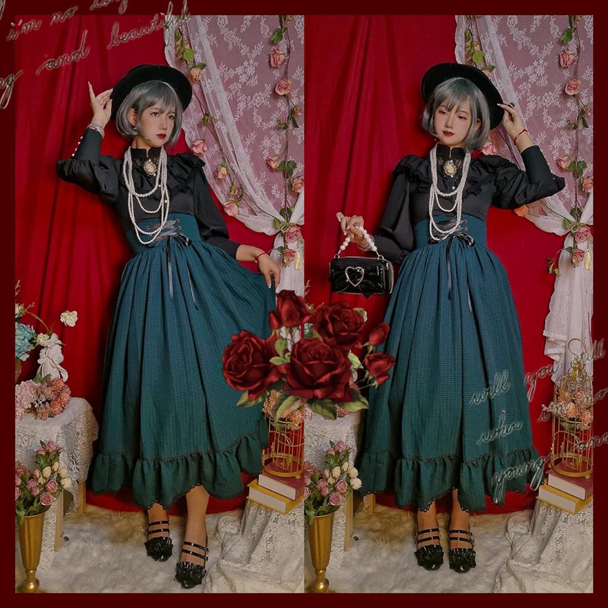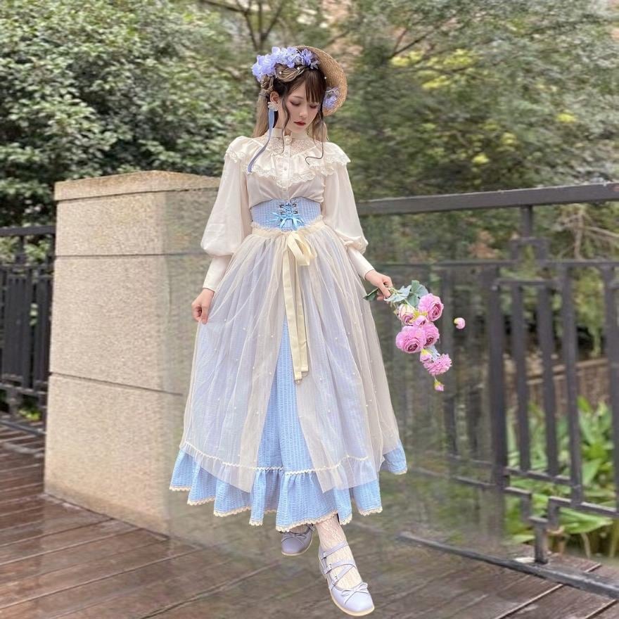 サブカル 服 地雷系 通販 クラシカルロリータ ハイウエスト ロングスカート コルセット クラロリ レースアップ リボン エレガント 甘い