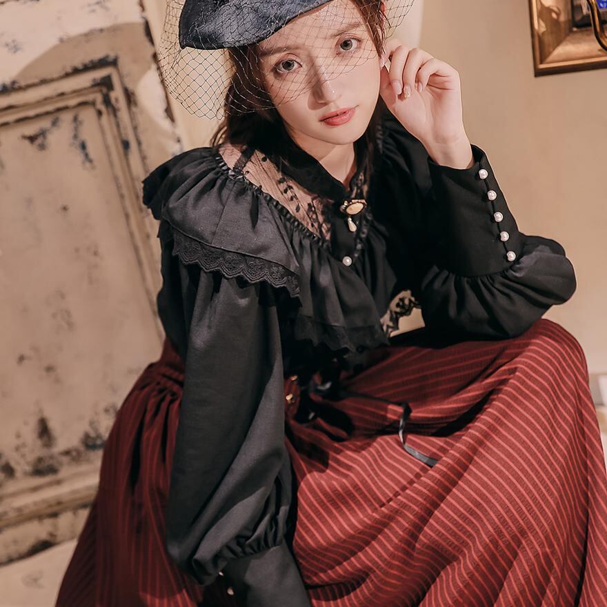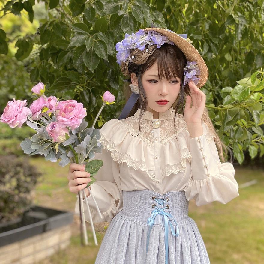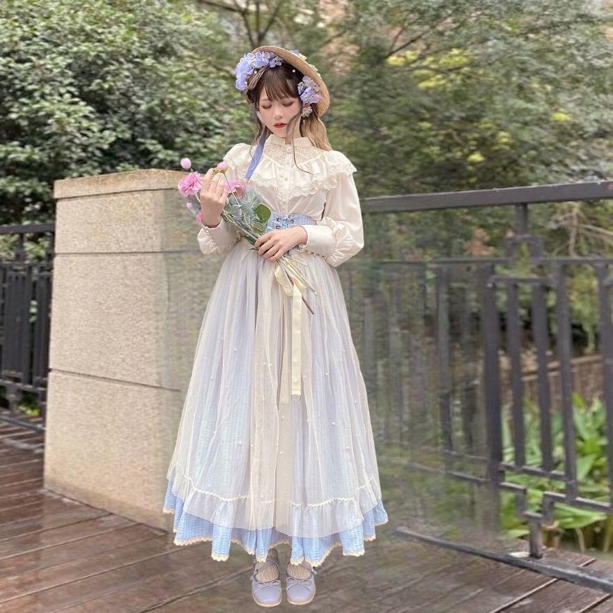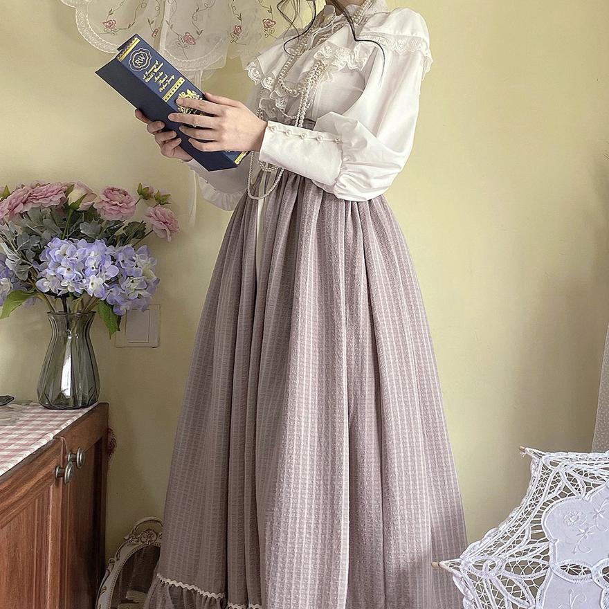 サブカル 服 地雷系 通販 クラシカルロリータ ハイウエスト ロングスカート コルセット クラロリ レースアップ リボン エレガント 甘い
