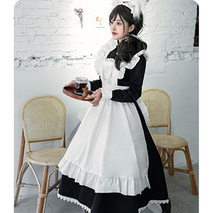 サブカル 服 地雷系 通販 メイド服 セット コスプレ 衣装 ロリータ ワンピース ロング丈 長袖 エプロン レース フリル 秋葉原系 コンカフェ