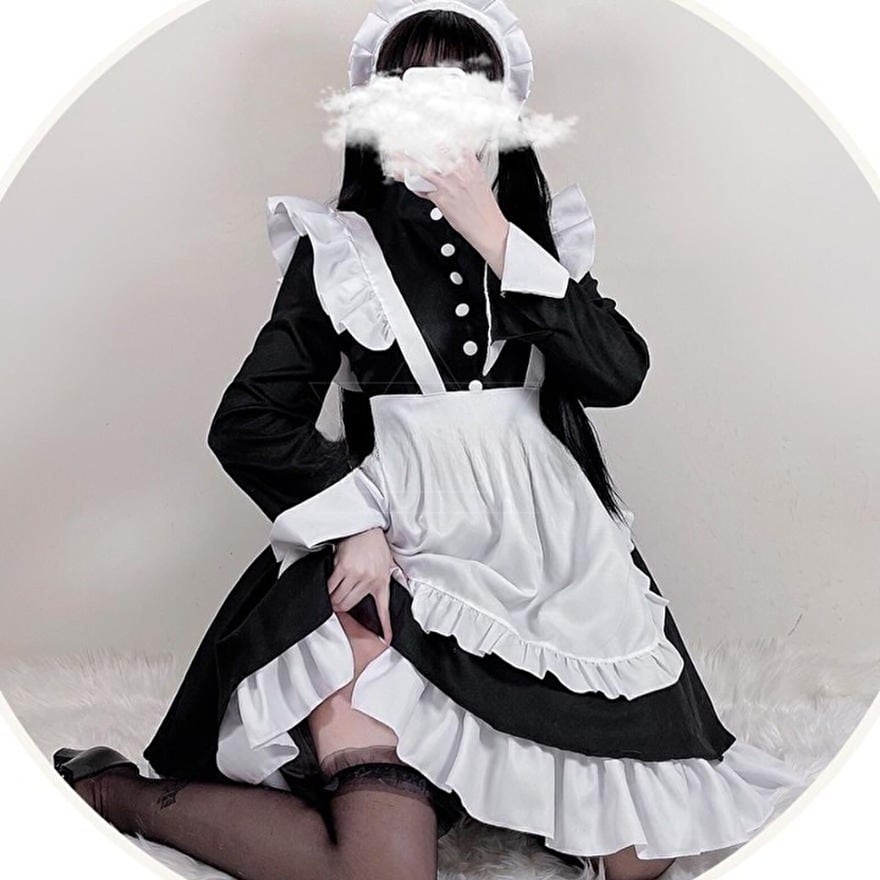 サブカル 服 地雷系 通販 メイド服 セット コスプレ 衣装 ロリータ ワンピース ミニ丈 長袖 エプロン レース フリル 秋葉原系 コンカフェ