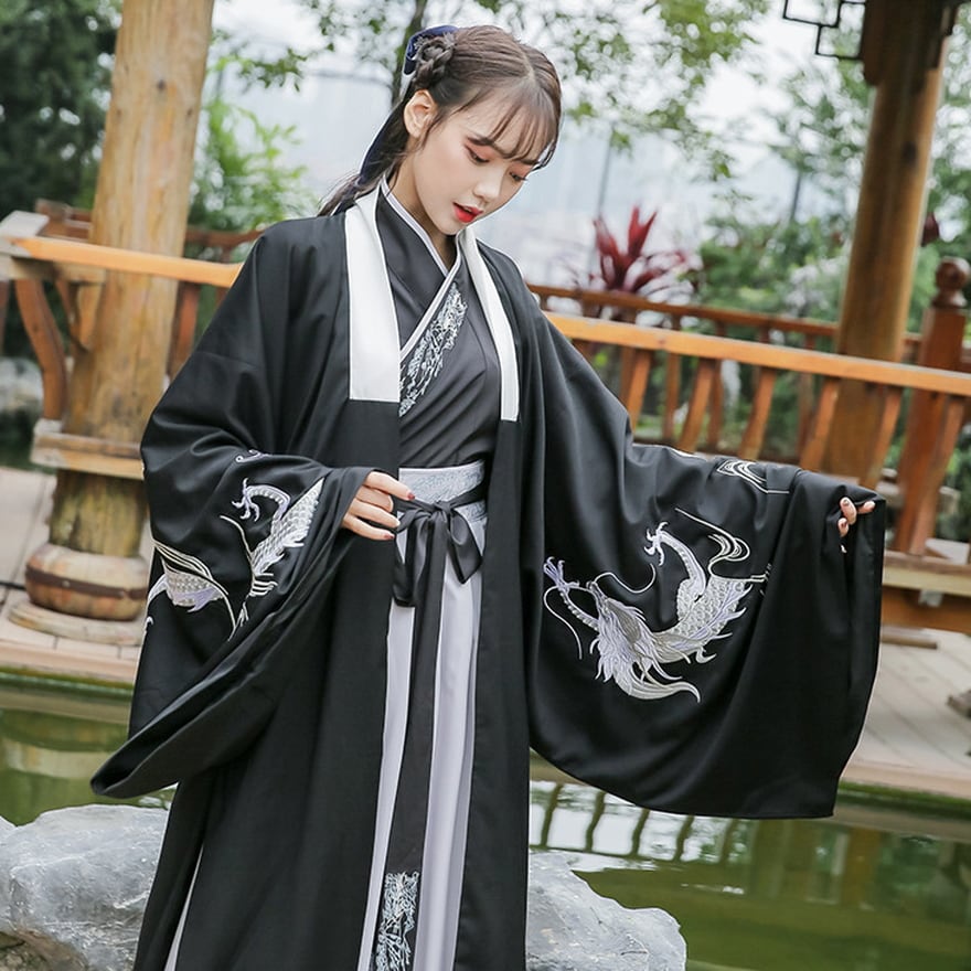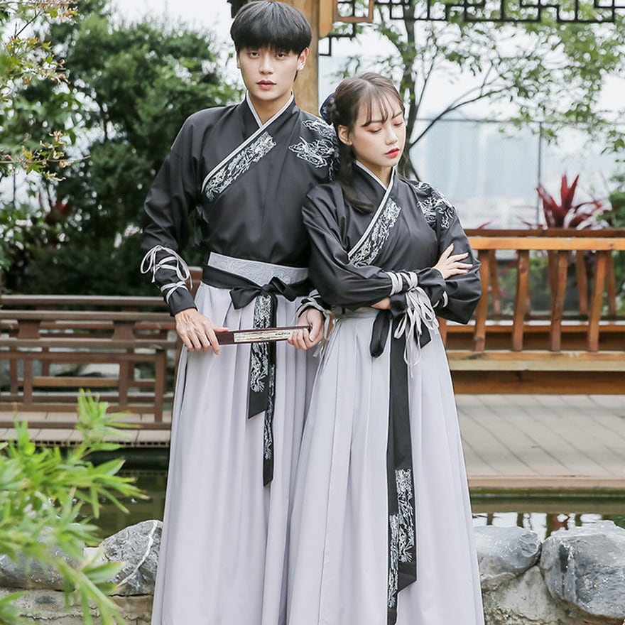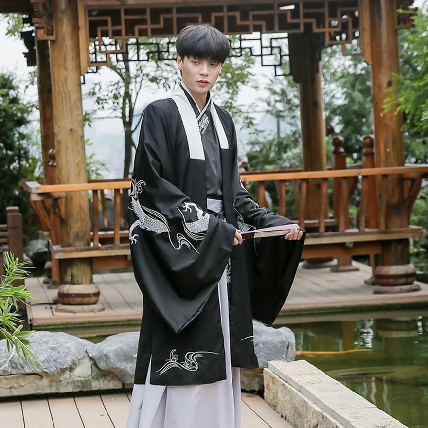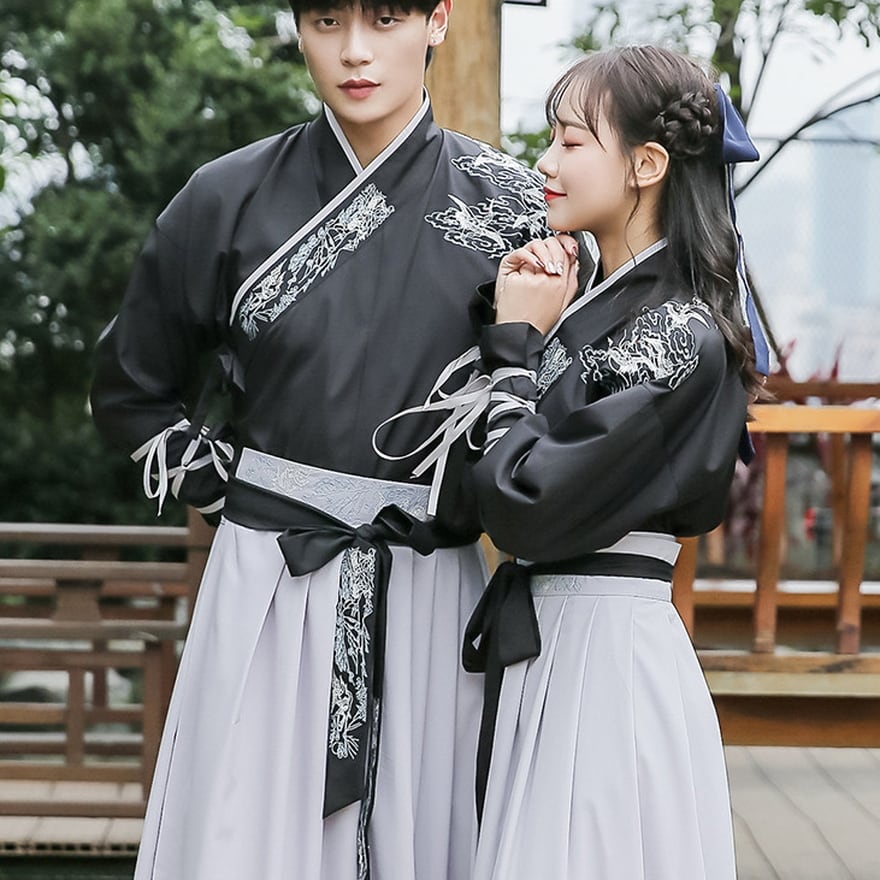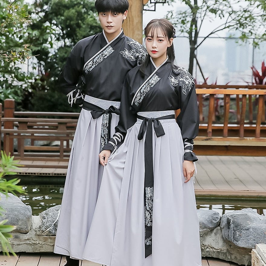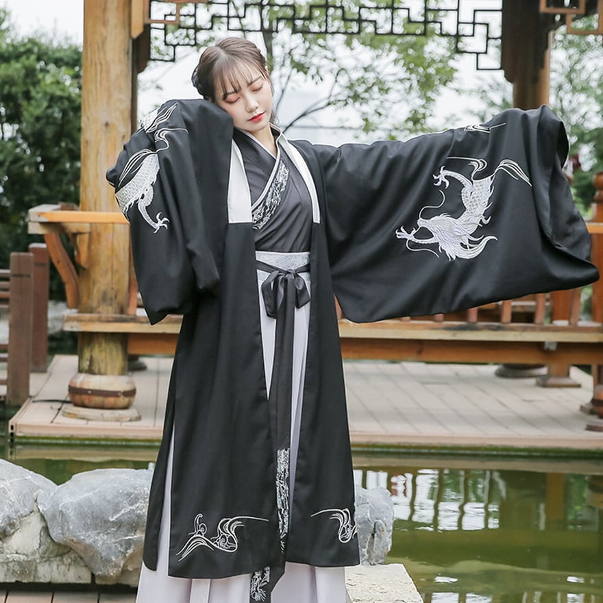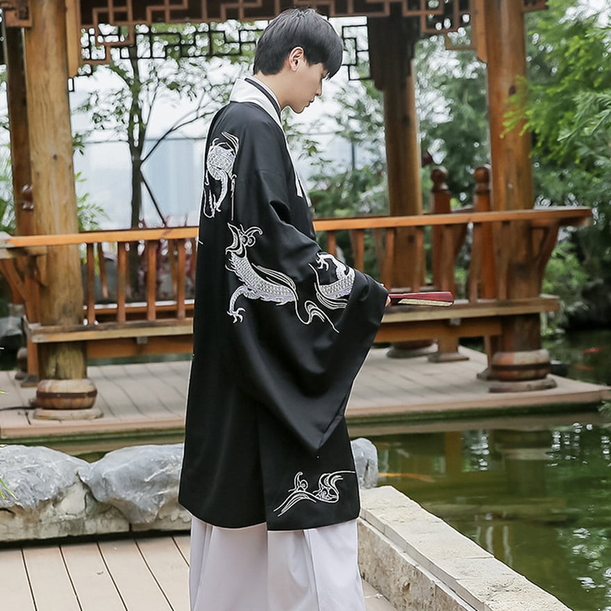 ビジュアル抜群なドラゴン刺繍がおしゃれな民族衣装風ユニセックスの漢服です。
