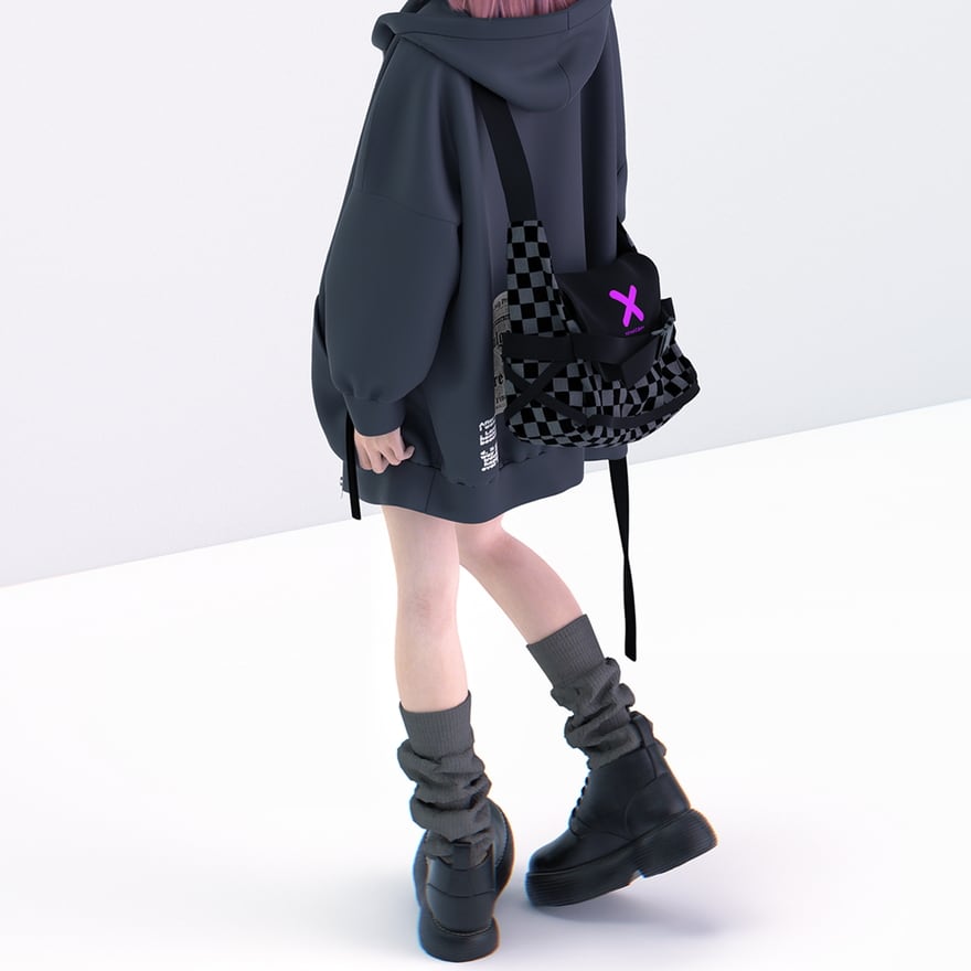 サブカル 服 地雷系 通販 ショルダーバッグ チェック柄 ユニセックス