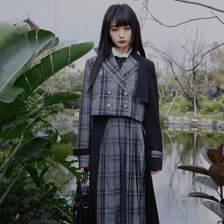 サブカル 服 地雷系 通販 スーツ チェック柄 バイカラー ハイウエスト プリーツ チェーン 量産型 甘め 可愛い お出掛け