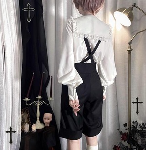 サブカル 服 地雷系 通販 ロリータ 皇子系 長袖 ドレス シャツ ブラウス フリル レース 少女 イラスト プリント