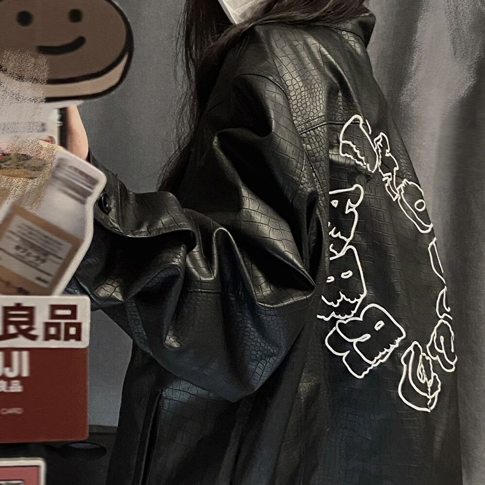 サブカル 服 地雷系 通販 アウター ジャケット PUレザー フェイクレザー レトロ オーバーサイズ ストリート系