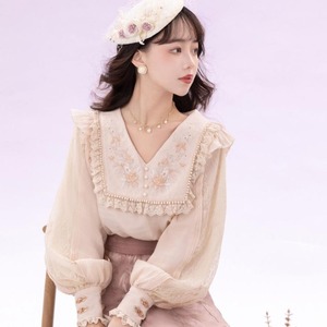 花柄刺繍がかわいい中華風ソフトロリータのブラウスとスリットスカートのセット割りです。