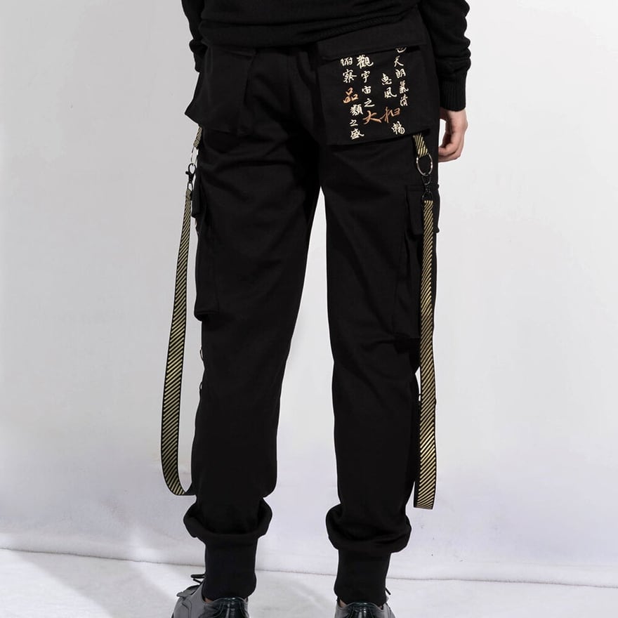 サブカル 服 地雷系 通販 パンツ サイドポケット ストラップ 漢字 刺繍 スキニータイプ ャイナ風 ユニセックス 闇かわいい