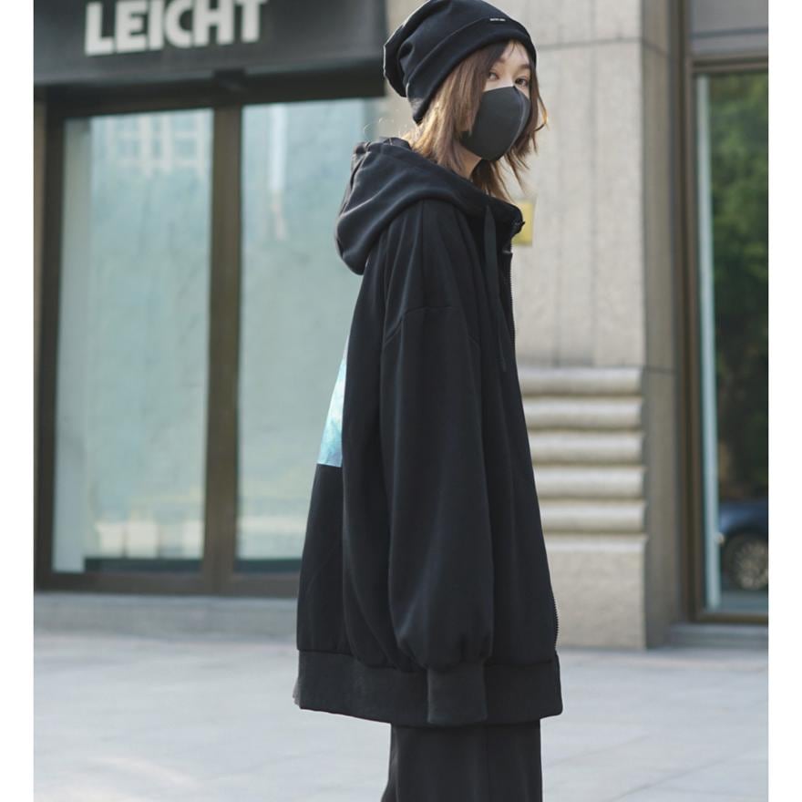 サブカル 服 地雷系 通販 アウター ロング ジップ パーカー 長袖 背面 プリント モード系 ゆったり 大きめ