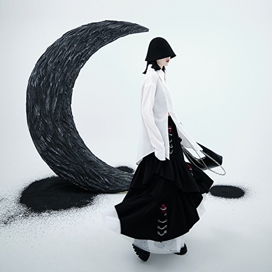 シンプルなワントーンカラーに大胆にカッティングされたスリット入りデザインが個性的でおしゃれ