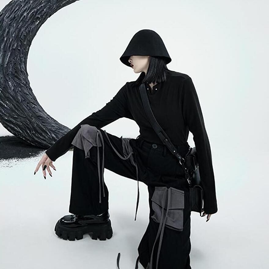 サブカル 服 地雷系 通販 大人モード系 長袖 Tシャツ シンプル ネックピン おしゃれ 大人 カジュアル