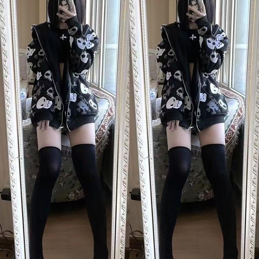 サブカル 服 地雷系 通販 病みかわ ジップパーカー 長袖 スカル プリント パンク かわいい