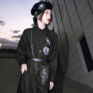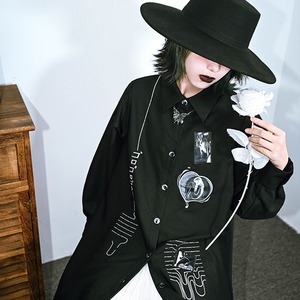 サブカル 服 地雷系 通販 チャイナ風服 チャイナ風服 古怪舎 シャツ 長袖 伊藤潤二 コラボ作品 富江柄 刺繍 闇かわいい十字架 ウエストベルト