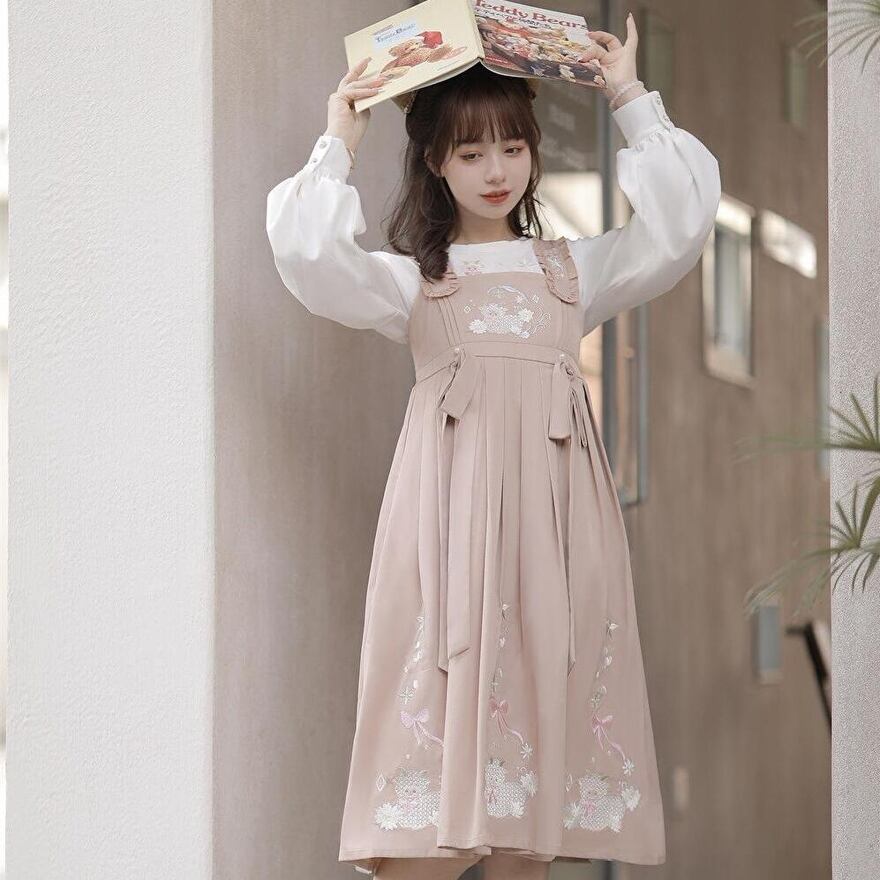 サブカル 服 地雷系 通販 ロリータ 華ロリ ソフトロリータ オールインワン 3点セット ジャケット 長袖シャツ JSK レトロ 中華系 刺繍 ヒツジ プリーツスカート