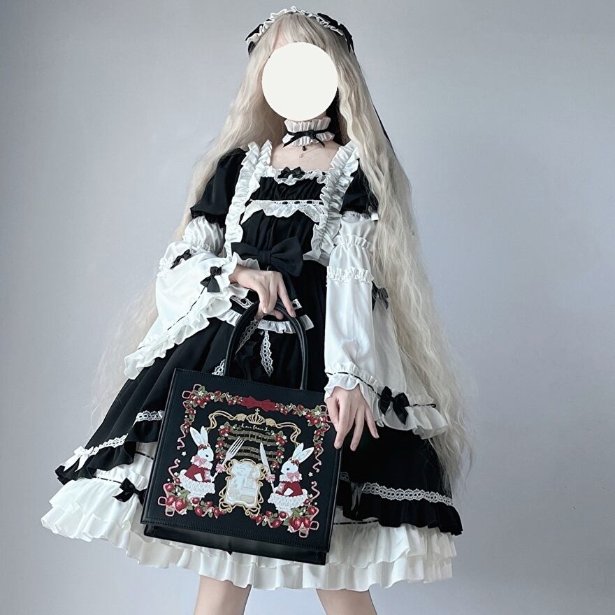 サブカル 服 地雷系 通販 ロリータ 甘ロリ レトロ トランペットスリーブ エレガント フリル リボン