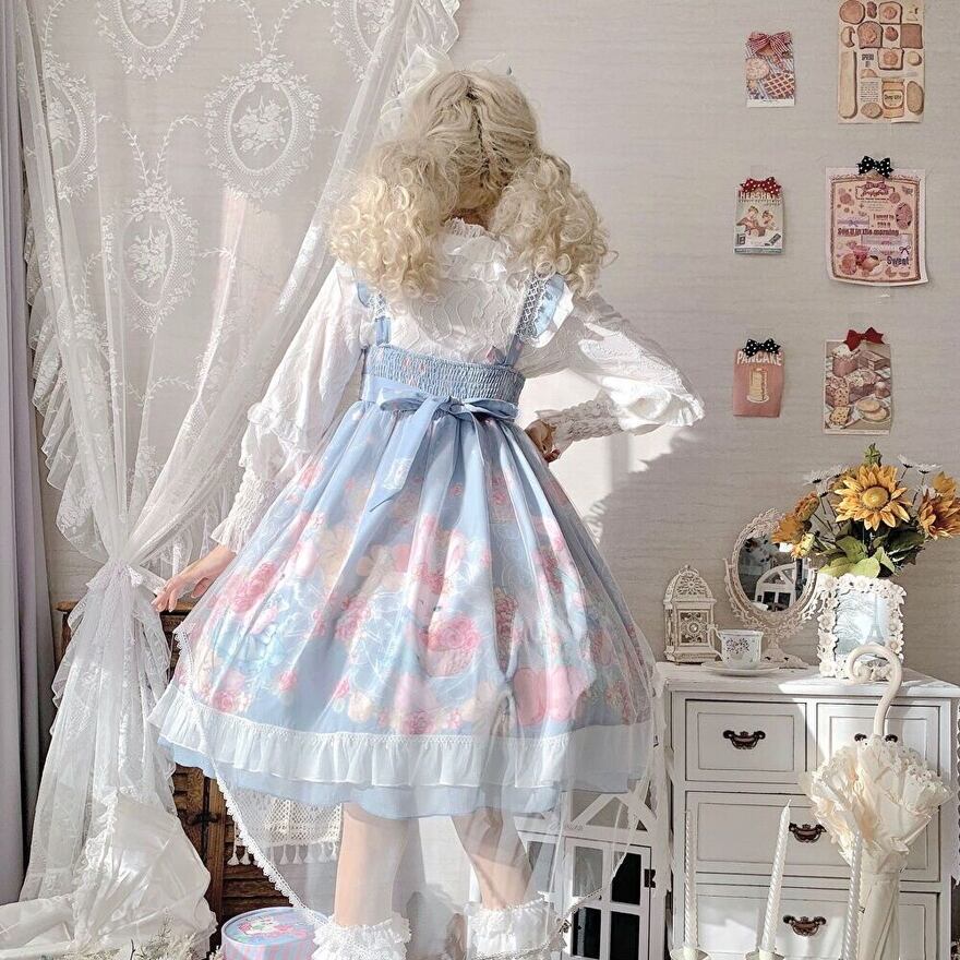 サブカル 服 地雷系 通販 ロリータ スイートロリータ 花柄 うさちゃん柄 パステルピンク ブルー リボン