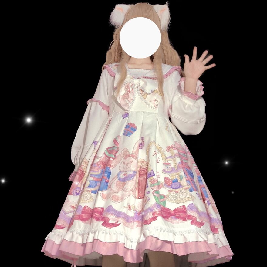 サブカル 服 地雷系 通販 ロリータ スイートロリータ ワンピース リボン うさちゃん柄 プリーツスカート