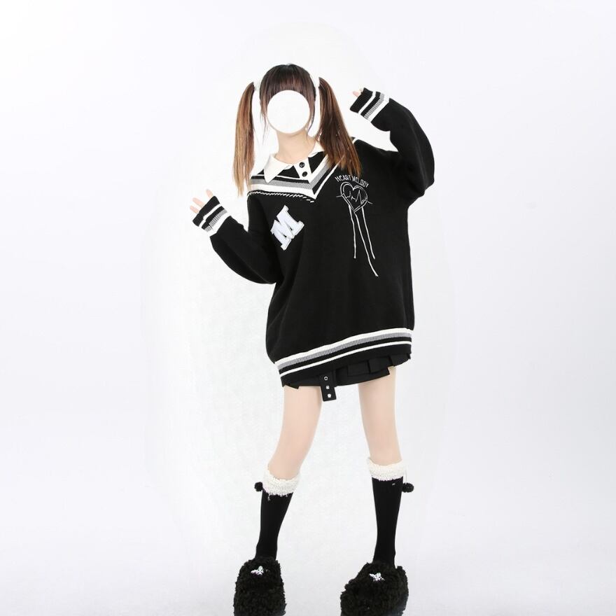 サブカル 服 地雷系 通販 Catwish ニット セーター フェイク ツーピース イレギュラー heart beat ロリータ かわいい
