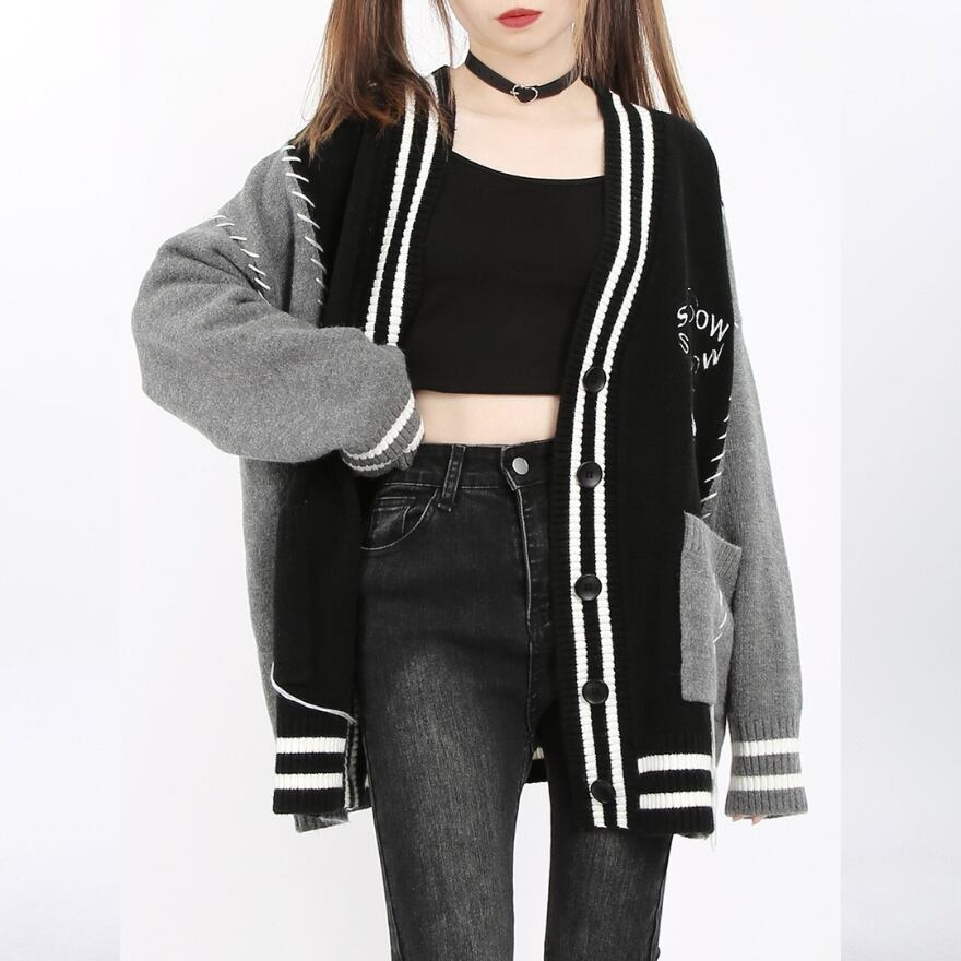 サブカル 服 地雷系 通販 Catwish ニット セーター Vネック 継ぎ接ぎ バイカラー ロリータ かわいい