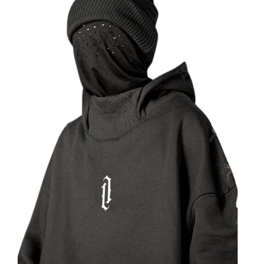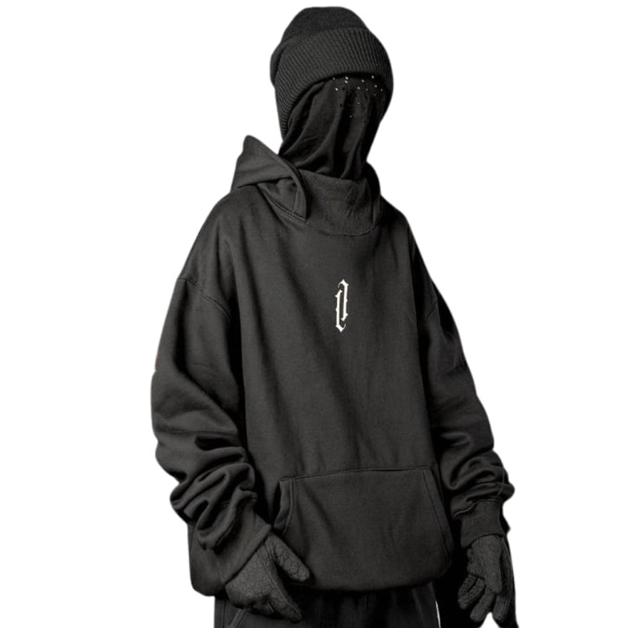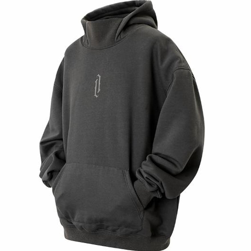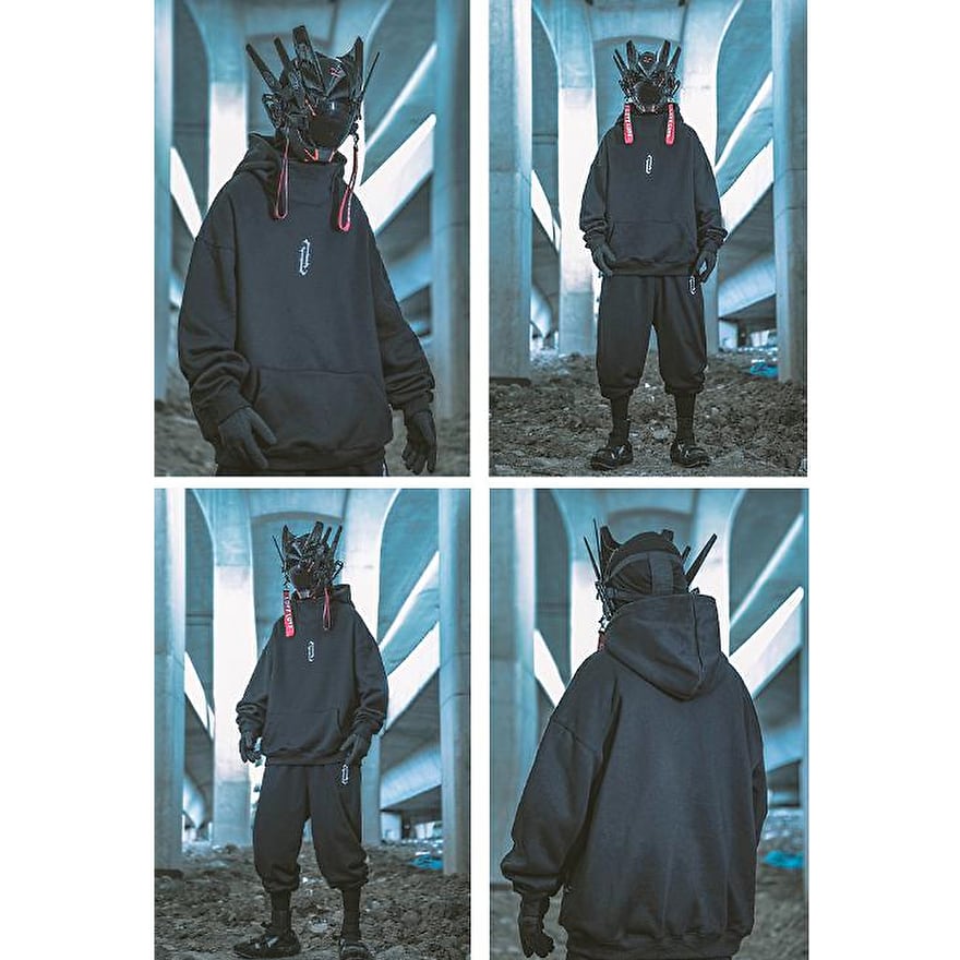 防寒、防風仕様のハイネックデザインのフーディ、ストリート系ミレニアムY2Kがかっこいい