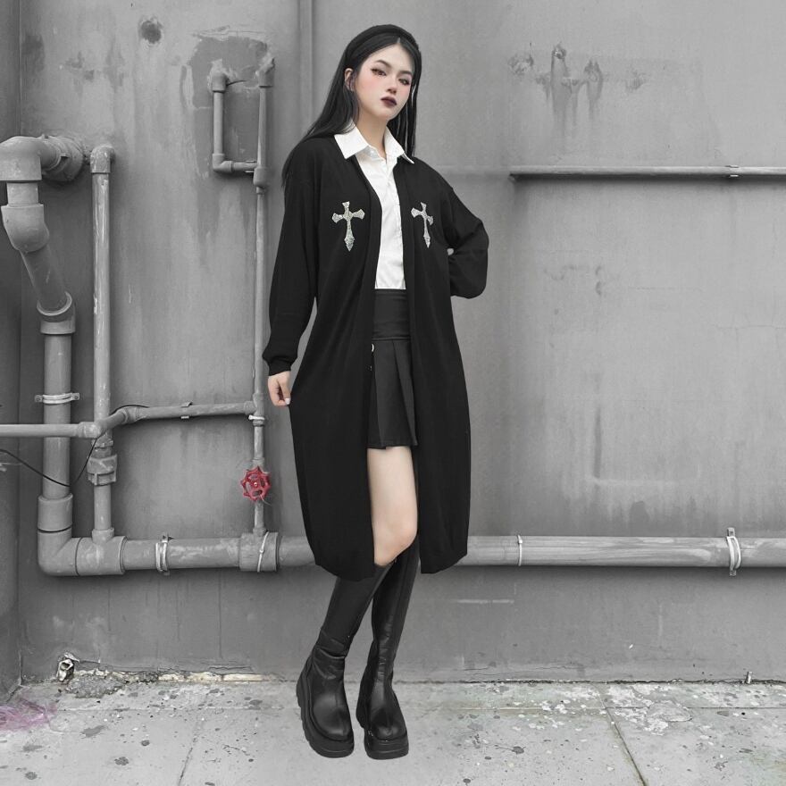サブカル 服 地雷系 通販 Miubオリジナル 長袖 ニット ロング カーディガン 十字架 闇かわいい 系