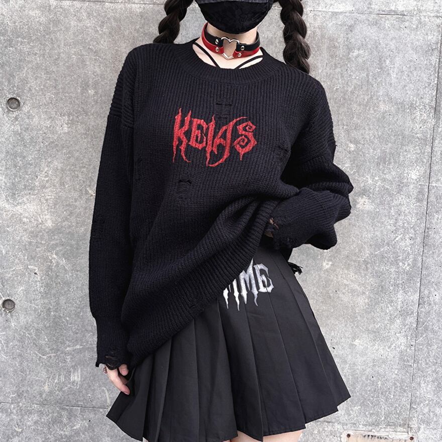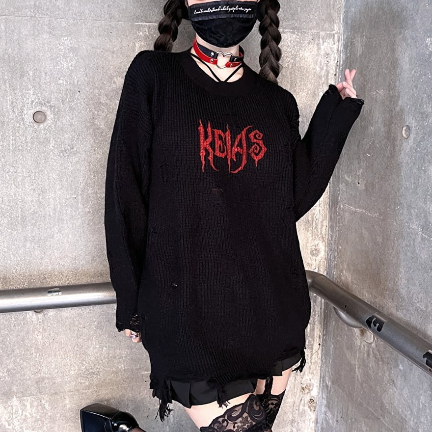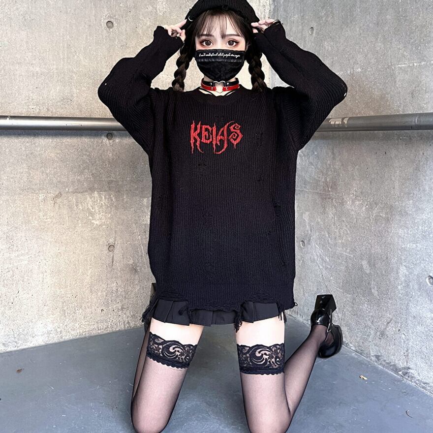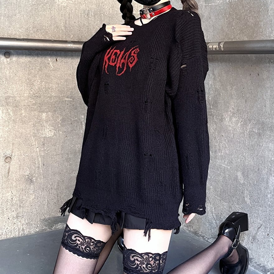 サブカル 服 地雷系 通販 Miubオリジナル ニット セーター ダメージ加工 闇かわいい 系