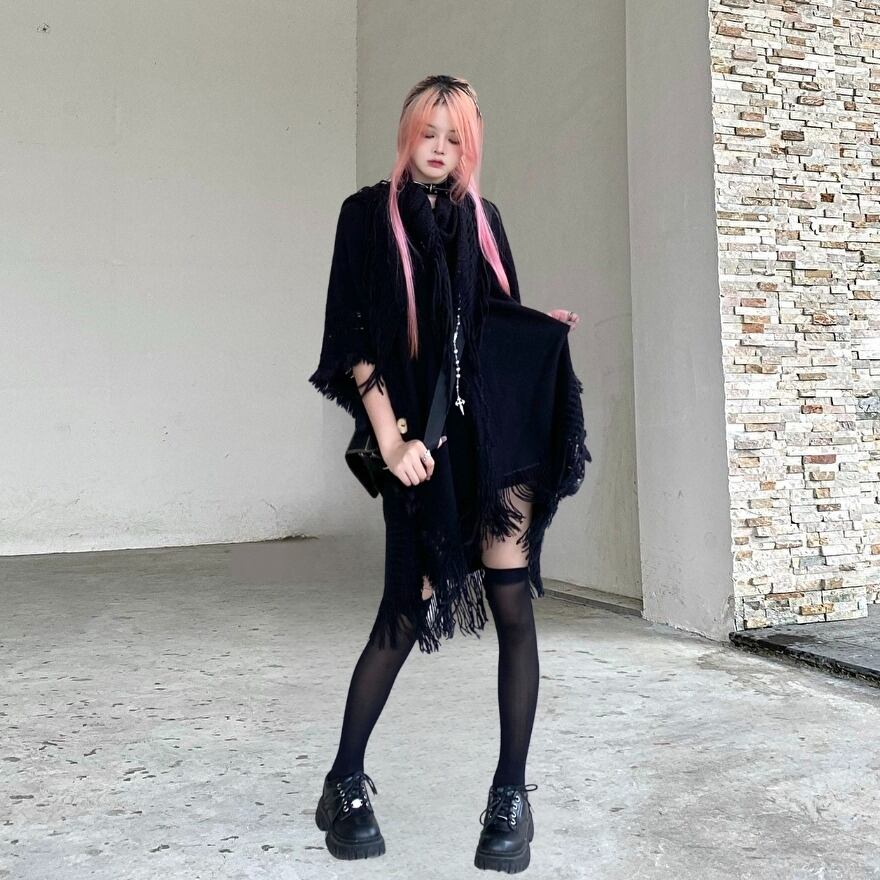 サブカル 服 地雷系 通販 ニット セーター ケーブル編み ショート丈 普段使い 闇かわいい