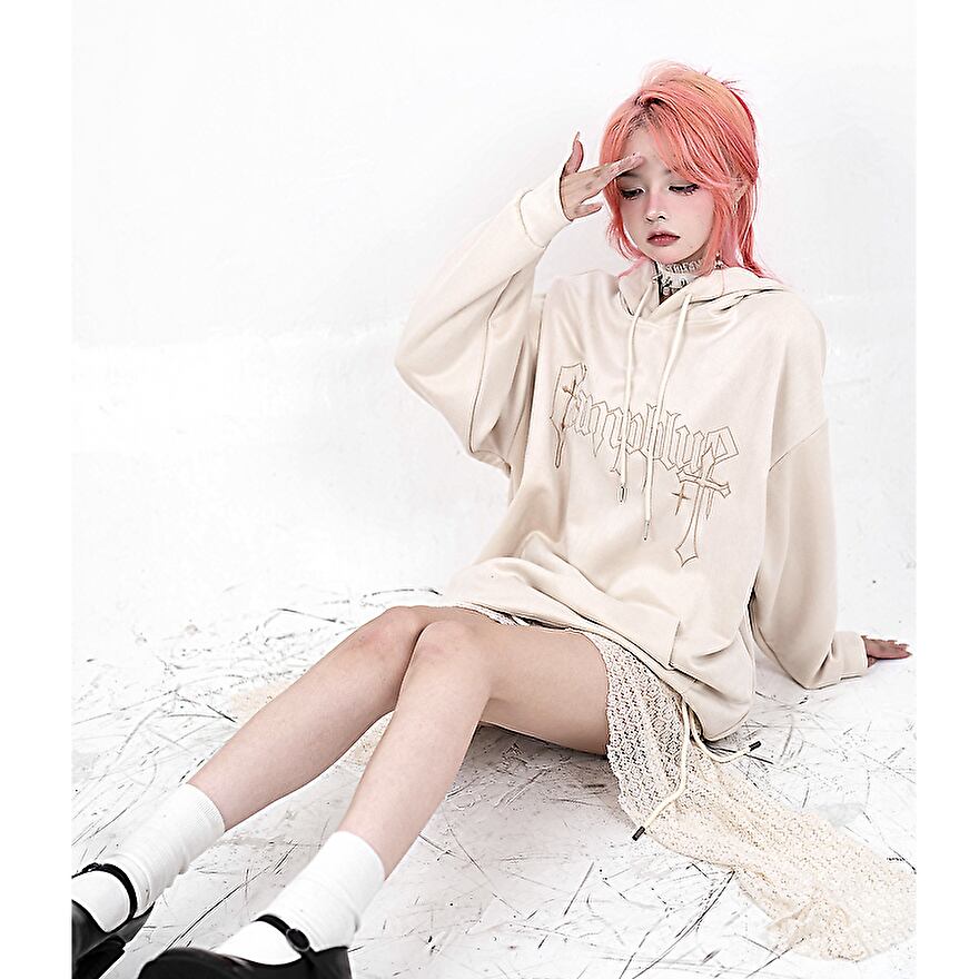 サブカル 服 地雷系 通販 プルオーバー フーディ バックロゴ クロス 十字架 服 闇かわいい