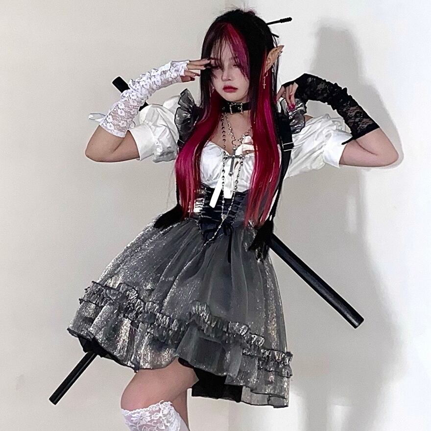 サブカル 服 地雷系 通販 半袖シャツ パフスリーブ ブラック 服 闇かわいい