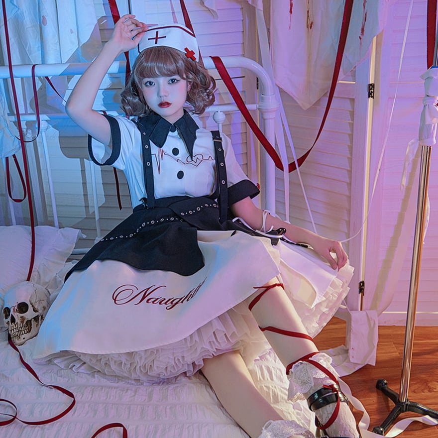 サブカル 服 地雷系 通販 ロリータ ゴスロリ ナース エプロン ストラップベルト 闇かわいい 暗黒 コスプレ コンカフェ衣装
