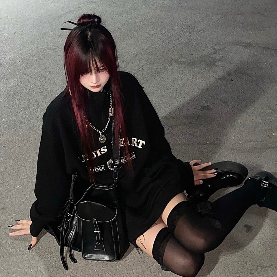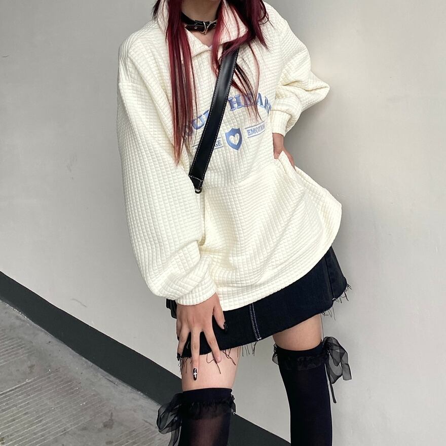サブカル 服 地雷系 通販 ワッフル セーター ゆったり ユニセックス 服 普段着使い 英字ロゴ