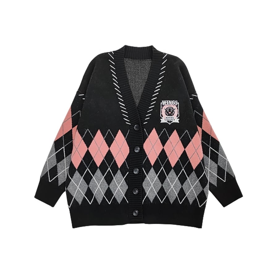 カーディガンの鉄板柄アーガイルに深V字回りには大きめなステッチがインパクト抜群