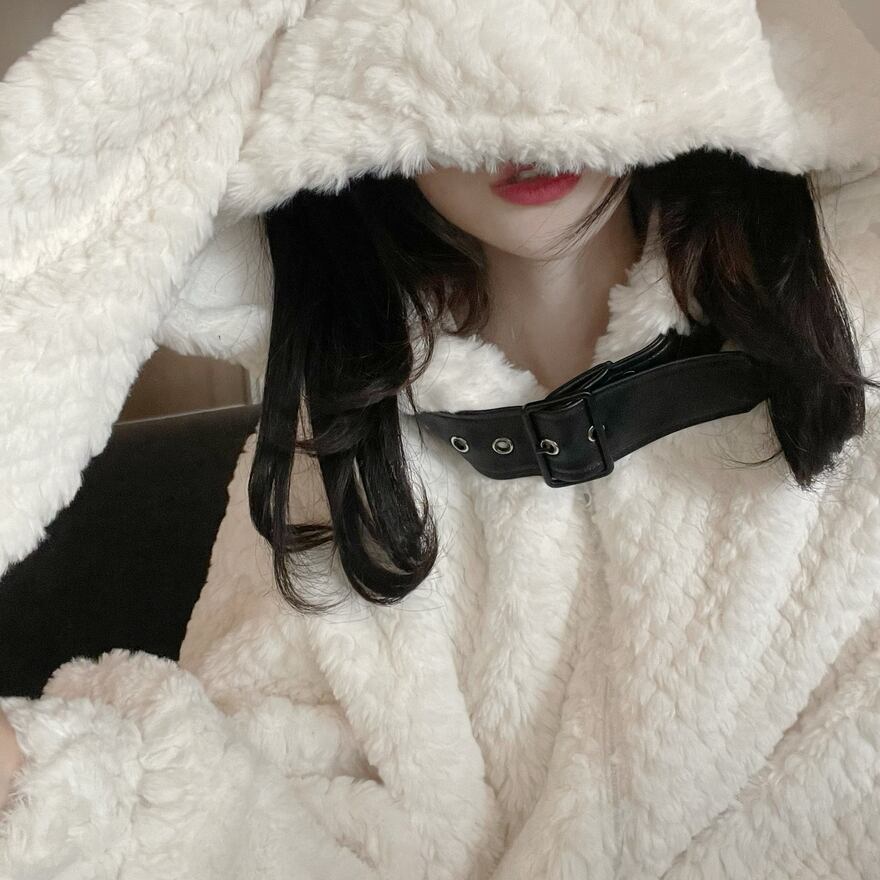 真っ白な起毛生地にうさぎ耳がキュートなJKロリータ系コートです