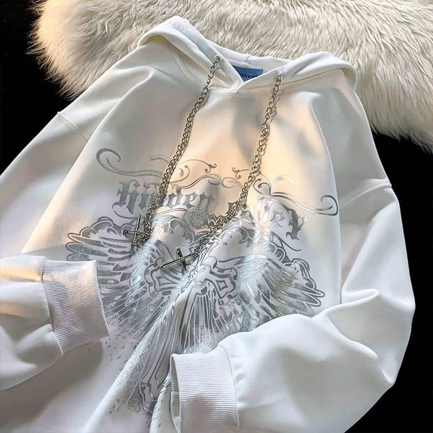 サブカル 服 地雷系 通販 プルオーバー パーカー クロス プリント チェーン オーバーサイズ Z世代