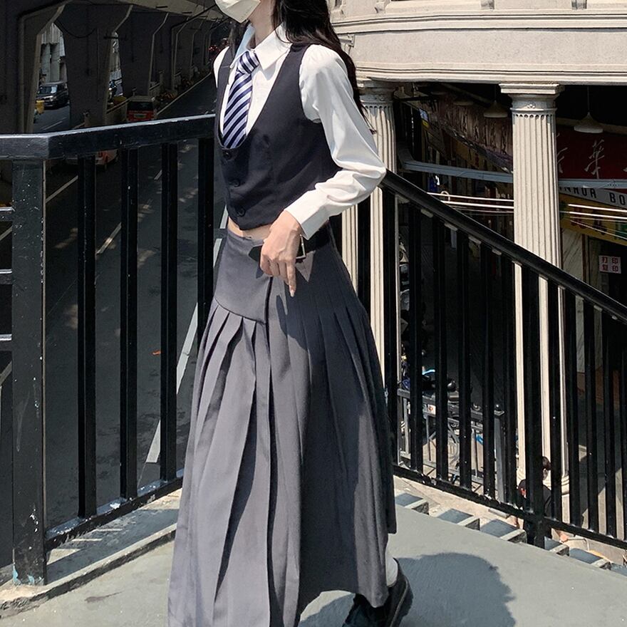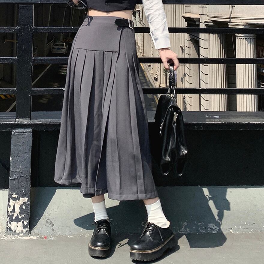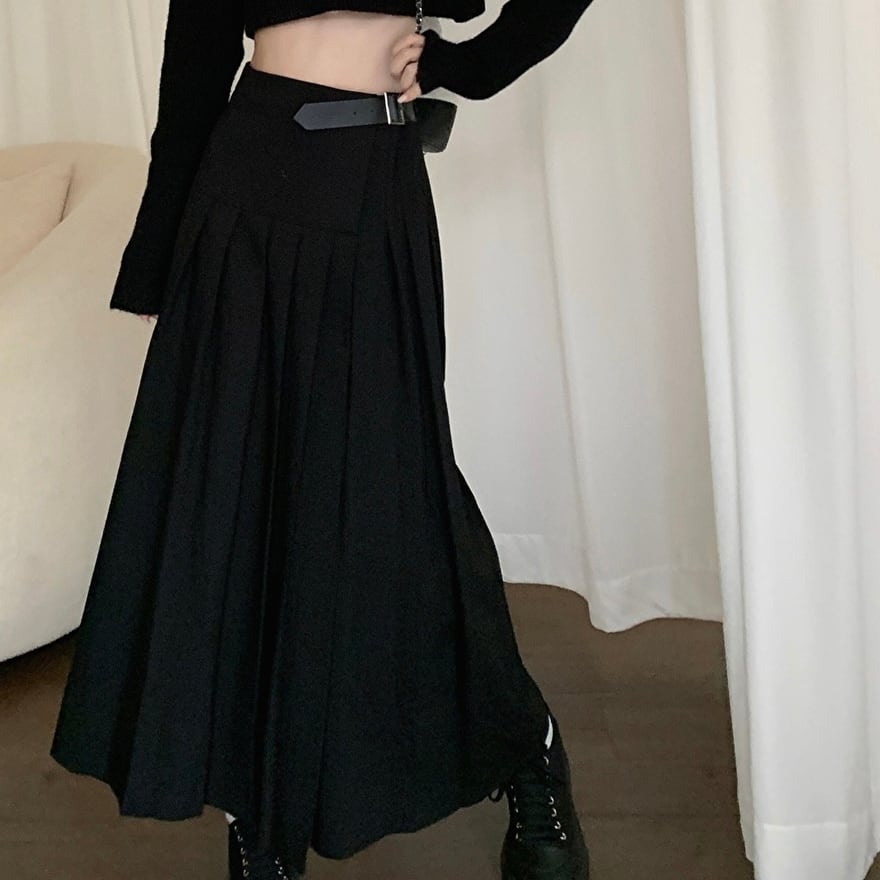 サブカル 服 地雷系 通販 プリーツ ロングスカート ベルト付属 JKスタイル ストリート系